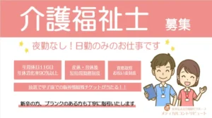 2025-09-01 / 最終更新日時 : 2025-11-26 daihyou 介護福祉士の求人情報 神戸市 常勤 介護福祉士 さかえ病院 2025年4月に病院名を変更し、リニューアルオープンしました! 駅近で通勤便利!栄駅徒歩2分 新しい職場環境でキャリアをスタートしませんか?年間休日116日。年休消化率90%以上を毎年継続しています。 事業所名】 さかえ病院 兵庫県神戸市西区押部谷町栄191-1 【職 種】 介護福祉士 【応募資格】 介護福祉士の資格を有する方 【業務内容】 各病棟(一般:54,療養型:45床) にて介護業務全般 ・食事介助、配膳下膳、排泄介助、おむつ交換、 ベッド移乗、入浴介助、清拭 等 【勤務時間】 シフト制 ※2交代制 日勤 8:45~17:15(休憩1時間) 夜勤 16:45~翌9:15(休憩2時間) 【給与】 月給:234,600円 ~ 315,600円 ※資格手当含む 《諸手当》 ・常勤手当:20,000円 ・資格手当:10,000円 ・住宅手当:5,000円 《別途》 ・夜勤手当:12,400円/回 ◎準夜手当:5,200円/回 ◎深夜手当:7,200円/回 ・交通費:上限50,000円/月 ※車、バイク通勤可 職員専用無料駐車場あり 【昇給賞与】 ・昇給:年1回 4月 ・賞与:年2回 6.12月 【休日・休暇】 年間休日116日 年次有給休暇(6ヶ月後10日付与) 慶弔休暇 産前産後休暇 育児休業 介護休業 【待遇・福利厚生】 各種社会保険完備 資格取得お祝い金制度 職員旅行・忘年会 退職金制度あり(勤務3年以上) 応募方法 ●下の応募フォームからご応募下さい。追ってこちらからご連絡いたします。 ●事前にご相談されたい方や見学希望の方もお気軽にどうぞ。 注: このコンテンツには JavaScript が必要です。