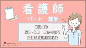 2025-10-01 / 最終更新日時 : 2025-10-02 川﨑 看護助手の求人情報 加東市 常勤 看護助手(日勤) 松原メイフラワー病院 地域に根ざし、患者さんの「これから」に寄り添う医療を。松原メイフラワー病院は、兵庫県加東市にある一般病床99床の病院です。リウマチ性疾患を中心に、内科・整形外科・外科・リハビリテーション科を備え、地域の皆さまに安心と信頼の医療を提供しています。 求人情報 【勤務地】 松原メイフラワー病院 兵庫県加東市藤田字944-25 神姫バス 南山駅 【職 種】 看護助手 【応募資格】 下記資格あれば尚可 ・介護福祉士 ・介護職員初任者研修修了者 【仕事内容】 看護師業務の補助作業 ・患者の介護 (入浴、食事、トイレ、洗面、着衣交換、移動介助、付添) ・お茶配膳、リネン交換等 【給 与】 月給:176,000円~182,000円 <内訳> ・基本給:168,000円~174,000円 ・ベースアップ手当:8,000円 <その他> ・住宅手当:20,000円(世帯主) ・初任者研修修了者 技能手当:1,000円支給 ・夜勤手当:5,500円/回(シフトによる) ・早出手当:5,500円/回(シフトによる) *時間外手当の支給については法定どおり ※ベースアップ評価手当は診療報酬改定により 変更となる可能性あり ・通勤手当:月上限50,000円まで <昇給・賞与> ・賞与あり:年2回 4.1ヵ月 前年度実績4.1ヵ月 ・昇給あり:1~2% 前年度実績 【勤務時間】 シフト制 8:30~17:15 休憩45分 ※早出、遅出、シフト勤務あり 【休日・休暇】 週休2日制 年間休日122日 夏季休暇 年末年始休暇 有給休暇(法定通り) 育児休暇(取得実績あり) 【福利厚生】 社会保険完備 マイカー通勤可 無料駐車場あり 退職金制度 勤続3年以上 定年60歳 再雇用65歳まで 【受動喫煙対策】受動喫煙対策あり(屋内禁煙)【契約期間】期間の定めなし【試用期間】3ヵ月 期間中同条件 応募方法 ●下の応募フォームからご応募下さい。こちらからご連絡いたします。●事前にご相談されたい方や見学希望の方もお気軽にお問い合わせください。 注: このコンテンツには JavaScript が必要です。